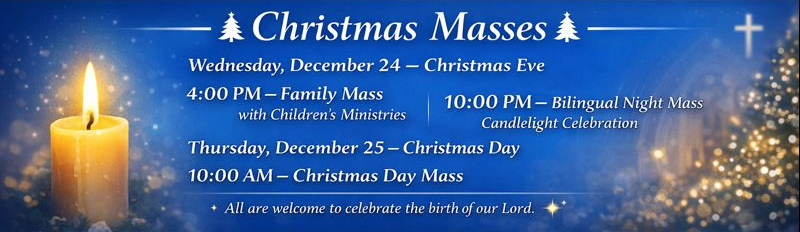 Thank you to all staff and volunteers who have helped make this season beautiful — especially our Staff, Light the Night Team, our Parish Decoration Committee, musicians, liturgical ministers, and all who give so generously of time, talent, and treasure. Your kindness supports our parish family and brings Christ’s love to our neighbors in need through your generosity and service.